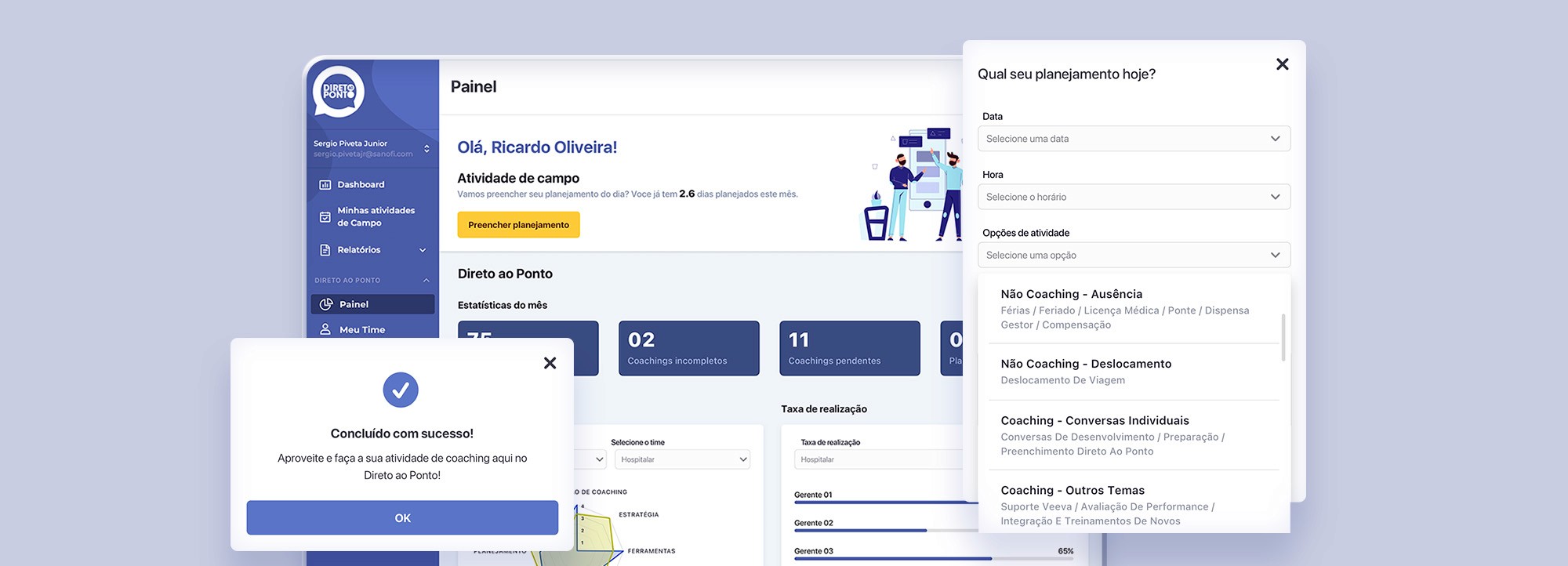 A Abacomm criou uma suite completa - em cima de uma estrutura sólida e escalável - para organização de equipes, aplicação de avaliações períodicas, acompanhamento de planos de ação com treinamentos e mentorias aos times com pior performance e uma transparência completa das atividades de cada vendedor em tempo real. O resultado final é um aplicativo mobile nativo (iOS e Android), uma versão web responsiva do projeto e um painel administrativo para gestão completa do time da Sanofi.